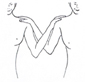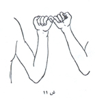 شکل 11 در قطعه (b) كه آن نیز از همان محل و همان زمان است گروه رقصندگان بازوان و دستهای خود را به مانند حالت نیایش مردمان پیش از تاریخ، به بالای سر خود بردهاند و چنانكه در تصویر شماره 13 نشان داده شده، میتوان گمان برد كه طرز قرار گرفتن كف دستها به یكی از دو صورت منقوش در این تصویر بوده است. نظیر تصاویر این قطعه است، حالت رقص سه نفری كه در روی قطعه سفال دیگری از تپه خزینه موسیان نقاشی شدهاند و مربوط به اواخر هزاره چهارم پیش از میلاد و در موزه لوور است (ش 12).