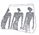 شکل 12- سفالینه از تپه خزینه موسیان تفاوتی كه این تصویر با تصویر قبلی دارد در این است كه در تصویر قبلی پایینتنه رقصكنندگان، توسط نقاش استیلیزه شده به حالت تزئینی درآمده است، در صورتی كه در این قطعه به حالت طبیعی نمایانده شده است.