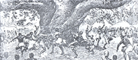 شکل 2- رقص گروهی از بومیان آفریقا بدور درخت کهنسالی که مقدس شمرده می شود