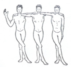 شکل 3- مجسمه رقص دسته بند به دور درخت مکشوف در فلسطین با دقت در تصاویر این قطعه سفال و سفالهای دیگری كه شرح یكایك آنها را بیان خواهیم كرد، چگونگی اجرای رقصها و طرز قرار گرفتن دستها و بازوان را تا اندازهیی میتوان دریافت ولی متاسفانه استنباط حركت پاها كه بدون شك توام با راه رفتن و جست و خیر و دور زدن بوده، از تصاویر موجود ممكن و میسر نیست (ش 4).