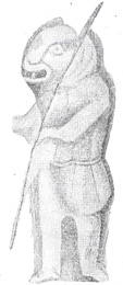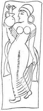 شکل 18- مجسمه مفرغ از دماوند حالت و طرز قرار گرفتن بازوان این مجسمه مفرغی ما را به یاد رقصهای انفرادی كه هنوز هم در اغلب نقاط ایران متداول است میاندازد. با توجه به اینكه رقصهای انفرادی در آن روزگاران بسیار به ندرت انجام میگرفت و شاید تنها زنان و رقاصههای زیباروی بودند كه برای تفریح خاطر رؤسای قبایل و صاحبان قدرت به رقصهای شهوانی انفرادی اقدام مینمودند، این قطعه مفرغ دومین نمونه از این گونه رقصها میتواند به شمار آید، زیرا در یك قطعه لوحه سنگی مربع شكل سوراخداری نیز كه در شوش به دست آمده (ش 19)