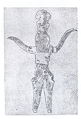 شکل 17 آنچه در اینجا باید افزود این است كه شباهت محسوسی بین رقص این نمونه با نمونههایی كه از تپه سیلك به دست آمده و در آغاز مقاله بدانها اشاره شد، مشاهده میگرددو این موضوع خود قرینهایست بر اینكه در بین مردم این دو ناحیه از ایران ارتباط و اتحادی از حیث تمدن و آداب و رسوم وجود داشته است. نمونه دیگری از رقصهای پیش از تاریخ ایران، قطعه مفرغی است به شكل انسان كه در نهاوند به دست آمده مربوط به نیمه هزاره سوم پیش از میلاد است و اینك در جزو مجموعه پروفسور هرتسفلد محفوظ است (ش 18).